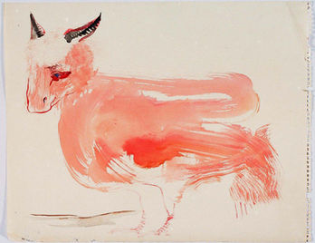 RHINO-METAMORPHOSIS. PEACOCK TAIL RHINO. ZOO ON RED BACKGROUND